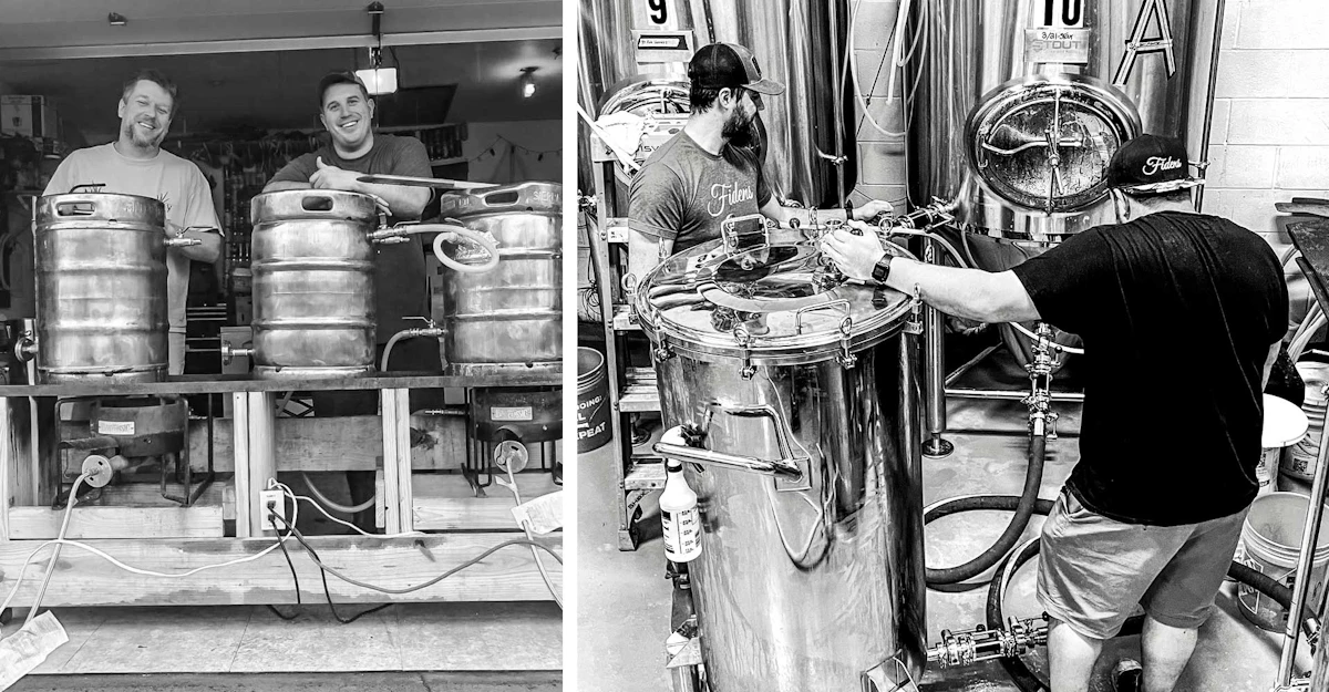 They built a half-barrel system in Parker’s garage, and a sketch of that system still appears on many Fidens cans, shirts, and hats. “I made the first batch and—you know the old cliché—got bit by the bug, and that was it,” he says. “I just dove in headfirst, trying to teach myself everything that I could.”