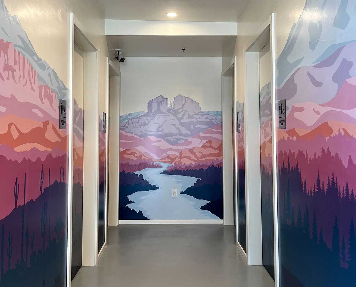 Effective taproom design extends beyond the physical space to include merchandising and branding opportunities. A display section showcasing brewery merchandise, branded glassware, and custom apparel opens complementary revenue streams while reinforcing brand identity. Well-designed signage and artwork further enhance the brewery's aesthetic and help tell its story, leaving a lasting impression on visitors. Some examples of strong, effectively branded taprooms OPA has had the pleasure to help design include Senza Maeso in Austin, Sedona Beer Co. in Arizona, and Pint House Pizza in Round Rock, Texas.