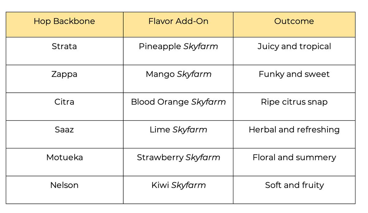 This table shows a few of our proven hops and flavor pairings.