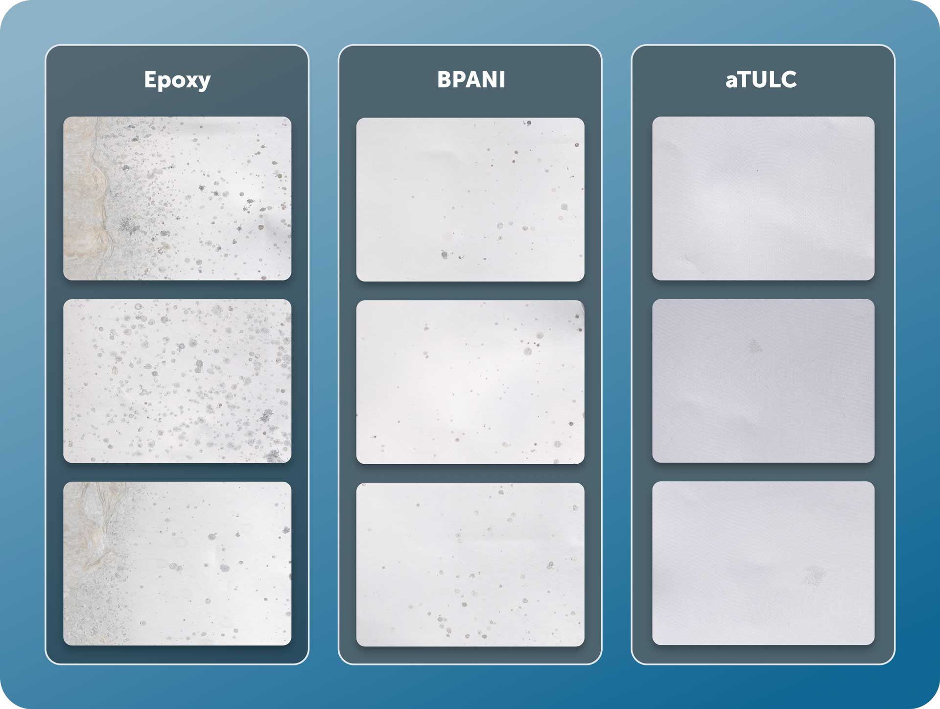 - Using pre-coated aluminum sheet, the coating process for aTULC is more consistent than sprayed-on BPANI and epoxy options—thicker, more uniform, and with fewer defects. This equates to lower risks for can corrosion.