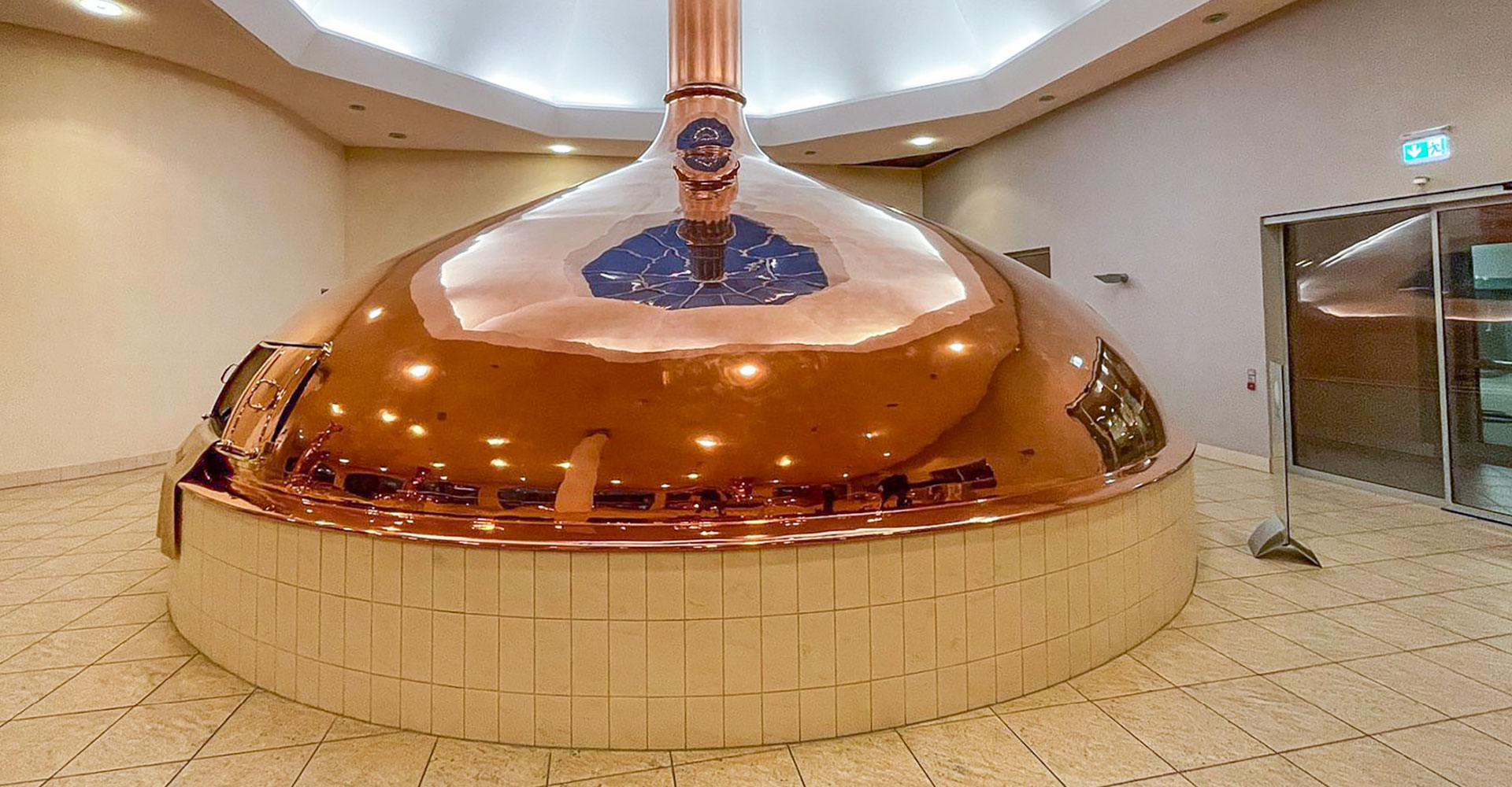 The mill is an impressive Steinecker Variomill four-roller wet mill. It can grind 25 tons of grain per hour, with each roller running at 800 rpm. All the equipment you see in the brewhouse is shiny copper. Looks can be deceiving, however—Allendoerfer says the insides are all stainless steel. “The copper is only to show the tradition,” he says. Despite constantly upgrading to state-of-the-art tech, the brewery likes to stay traditional where it can. Rothaus spent roughly a million euros to keep the outsides of the kettles copper—not to mention the constant polishing to keep them at showpiece level.