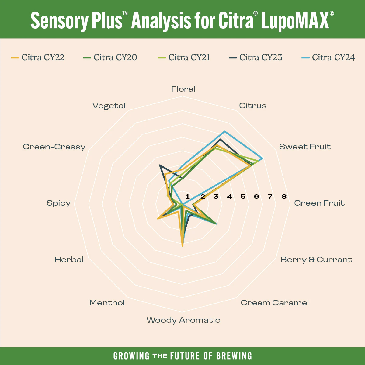 Sensory Plus preserves and balances Citra’s key attributes across five harvest years—keeping its profile dialed-in while absorbing natural crop variation.