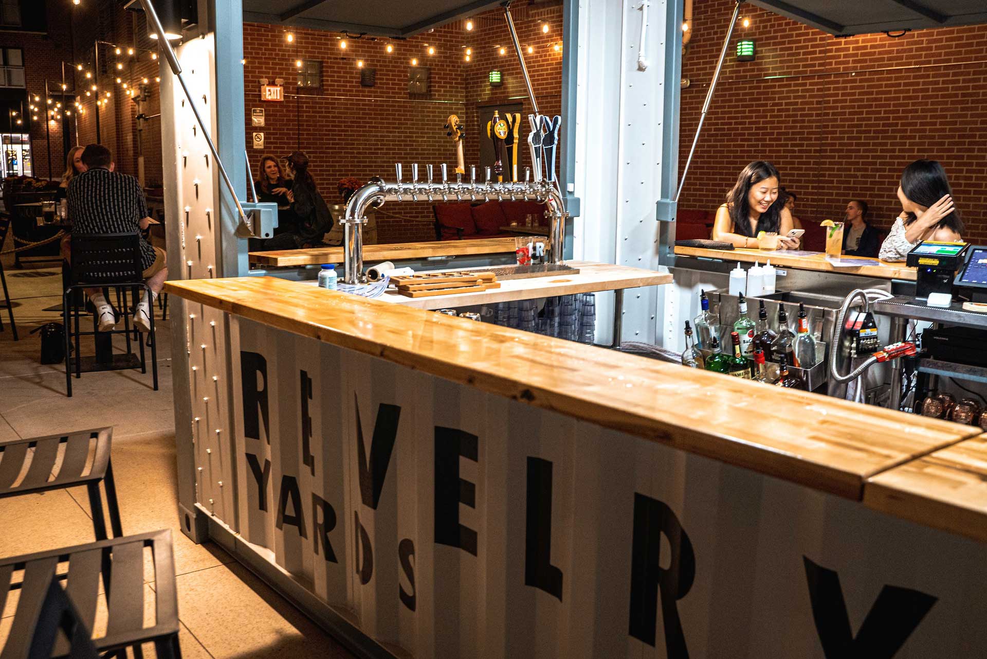 Featuring 12 beers on tap and offering additional bar-side seating along the broadsides of the container, this standalone bar has become a popular fixture for Revelry Yards patrons. The BoxPop unit has significantly increased Revelry Yards’ outdoor patio space for events and nearly doubled their serving capacity.