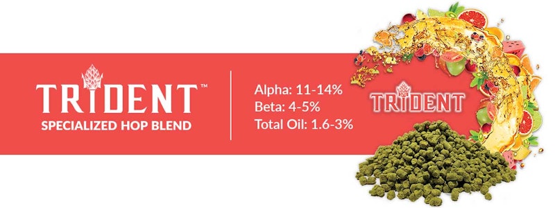 Trident is a specialized hop blend carefully balanced with a much wider range of aroma and flavor characteristics than any single hop variety could generate on its own. Trident was developed for those seeking a hop-forward punch to the nose—its fruity, citrus, tropical, passion-fruit profile is perfectly balanced to fit any beer style. Although Trident™ is great on its own, it can also be used with other unique varieties to build an even more complex and potent flavor profile.
