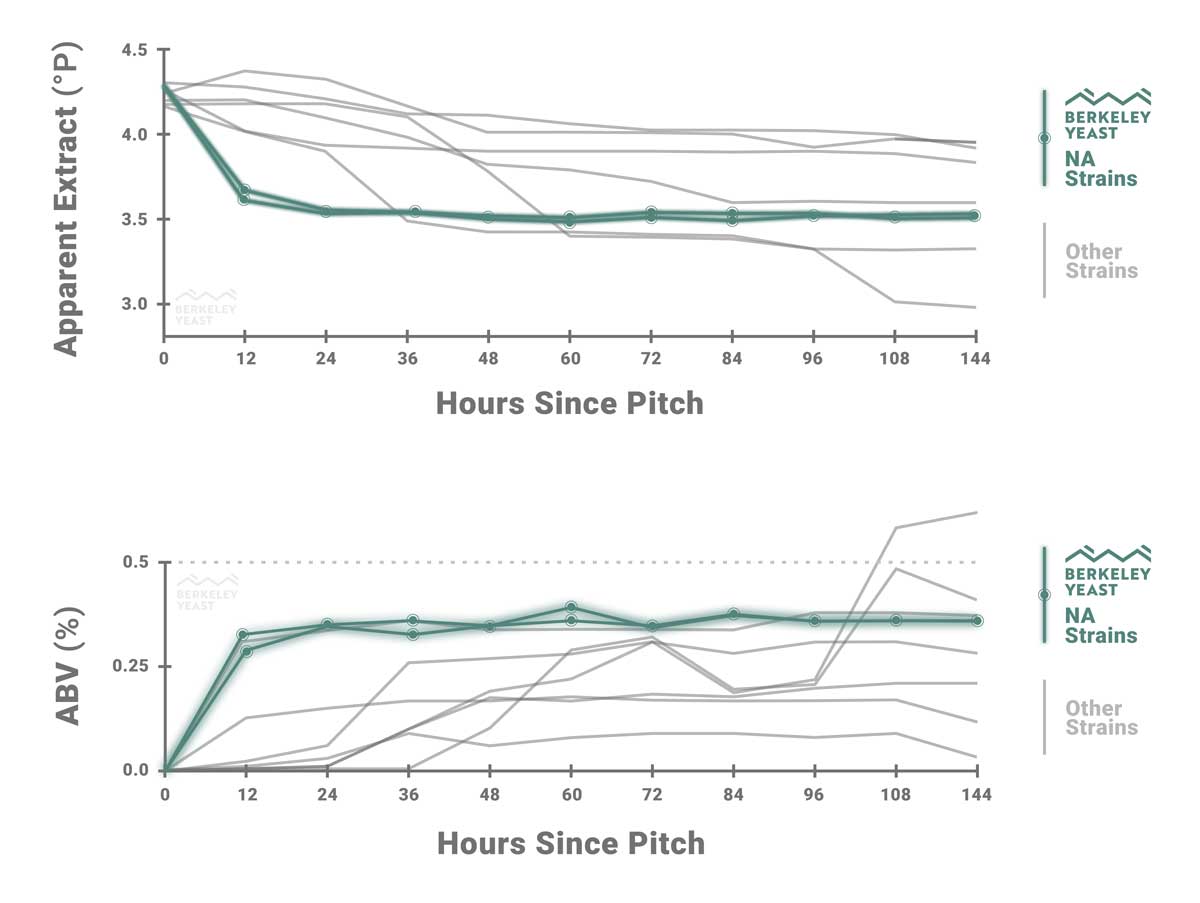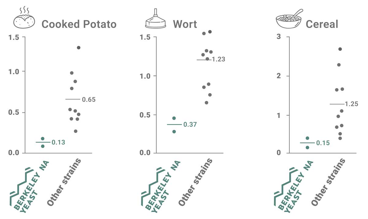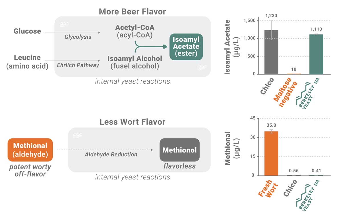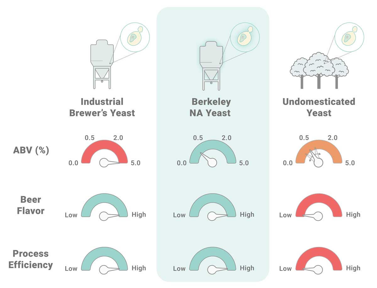 Figure 1. Berkeley’s strains make NA beer with the same beer flavor and process efficiencies as traditional brewer’s yeast.