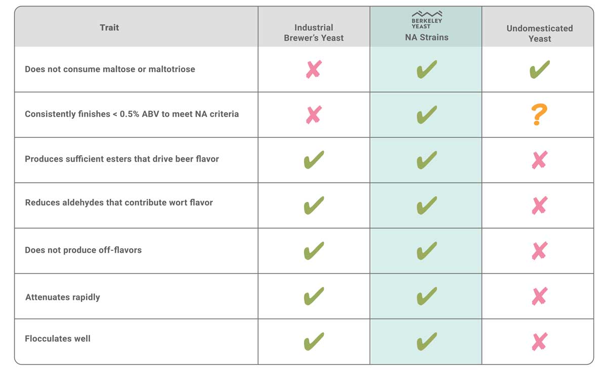 Making a high-quality NA beer requires domesticated traits that allow for proper fermentation chemistry, the absence of wild off-flavors, and process efficiencies. Here we explore how Berkeley Yeast has addressed these challenges by developing maltose-negative NA strains from a domesticated industrial brewer’s yeast, thereby retaining the performance benefits gained through centuries of trait selection by brewers.