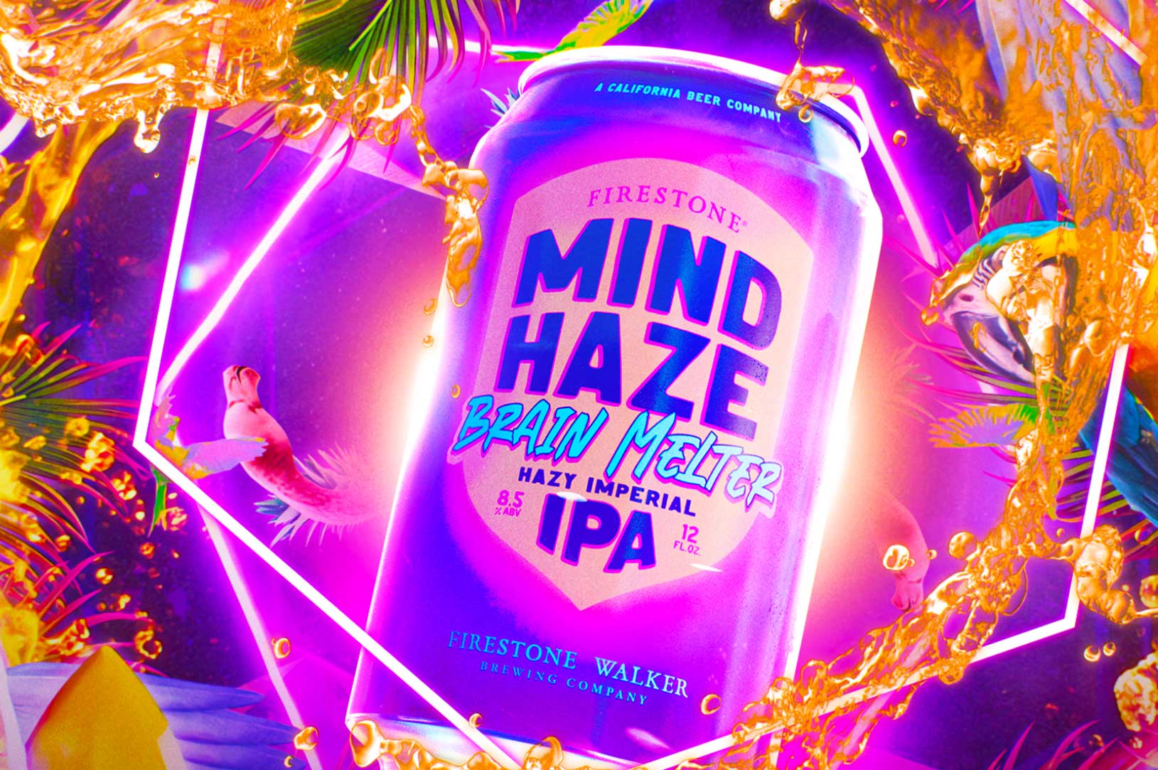 Mind Haze Hazy Tropical IPA, Brain Melter Hazy Imperial IPA, and Cosmic Crusher Juicy Imperial IPA feature equally bold packaging art that was designed in house by head of creative Jeremy Taylor and his team of artists at Firestone Walker.