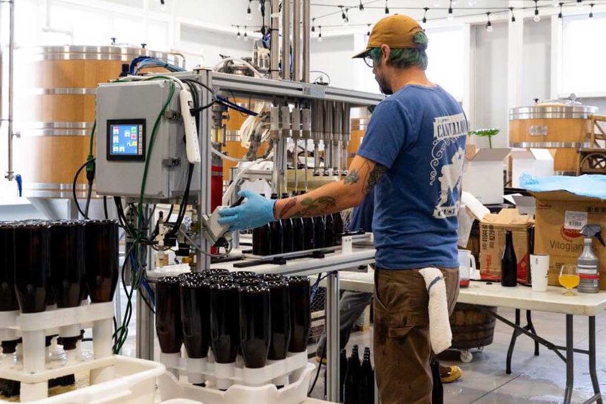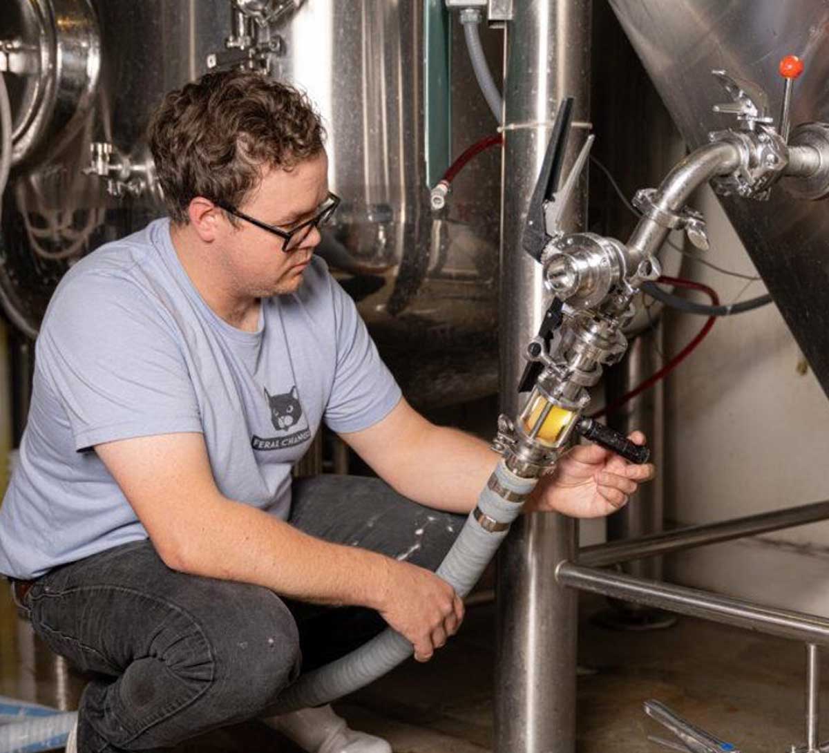 Temescal’s Head Brewer, Ryan Hammond, transfers a beer. Photo courtesy of Temescal Brewing