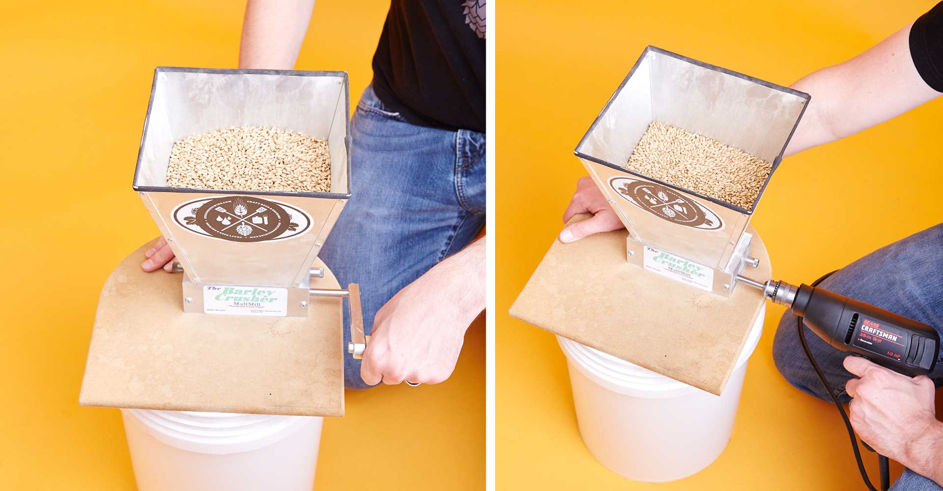 Commercial breweries often wet mill their malt, which involves hydrating dry malt with hot water or steam as it enters the mill. This makes the malt husks more pliable, which helps them remain intact as the starchy endosperm is crushed into fine pieces. You can achieve similar results by spritzing your malt with a spray bottle 20 minutes or so before crushing it. Just give the malt a good mist, stir, and repeat until it feels slightly moist. Not wet, just damp—“less dry,” even. Then crush your malt as usual.