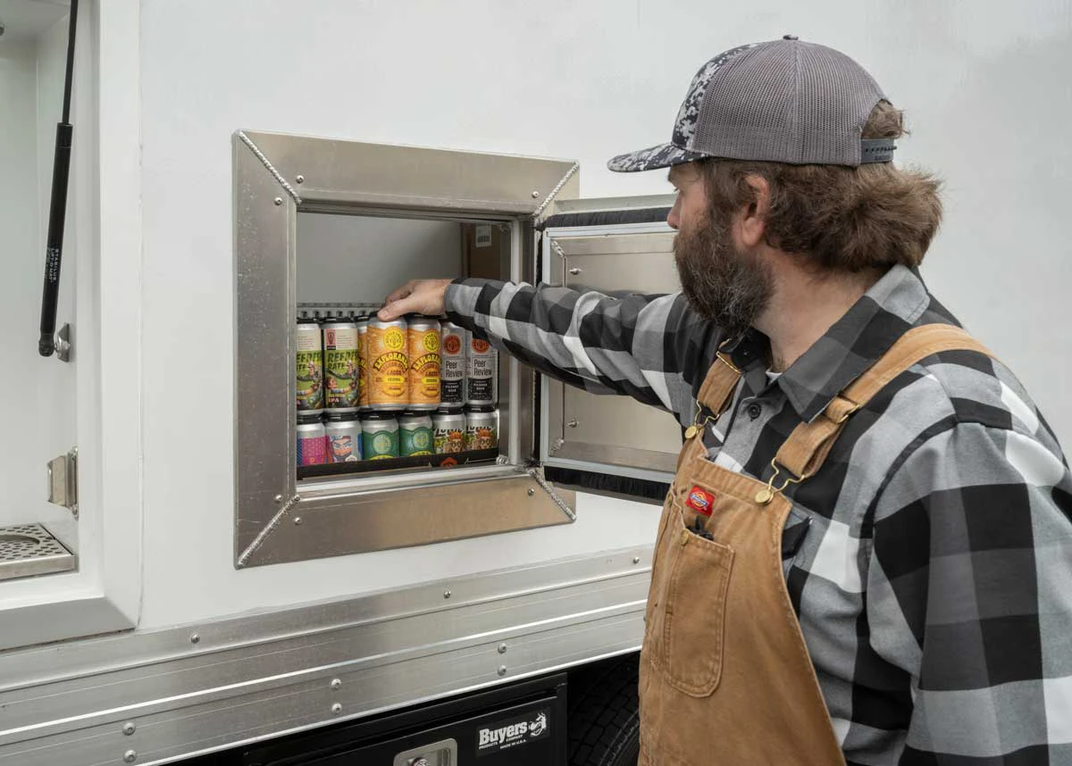 The refrigerated body, cooled by a Thermo King T-690 MAX unit with electric standby, keeps beer at optimal temperatures around the clock. The bomber door offers easy access to bottles and cans, and the locking tap-door cover and menu board add a professional touch to any setup.